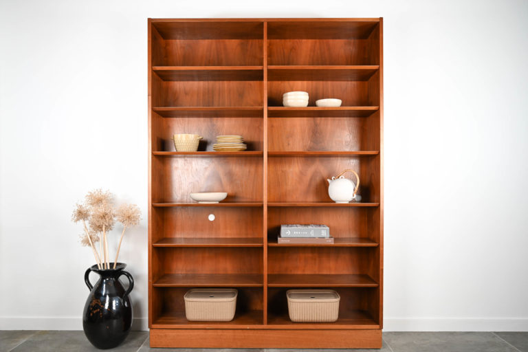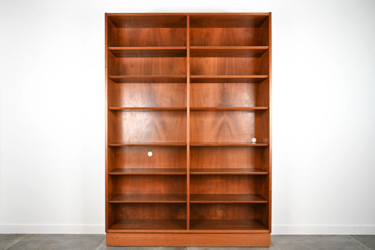 Bibliothèque en orme sur socle avec étagères ajustables en hauteurs