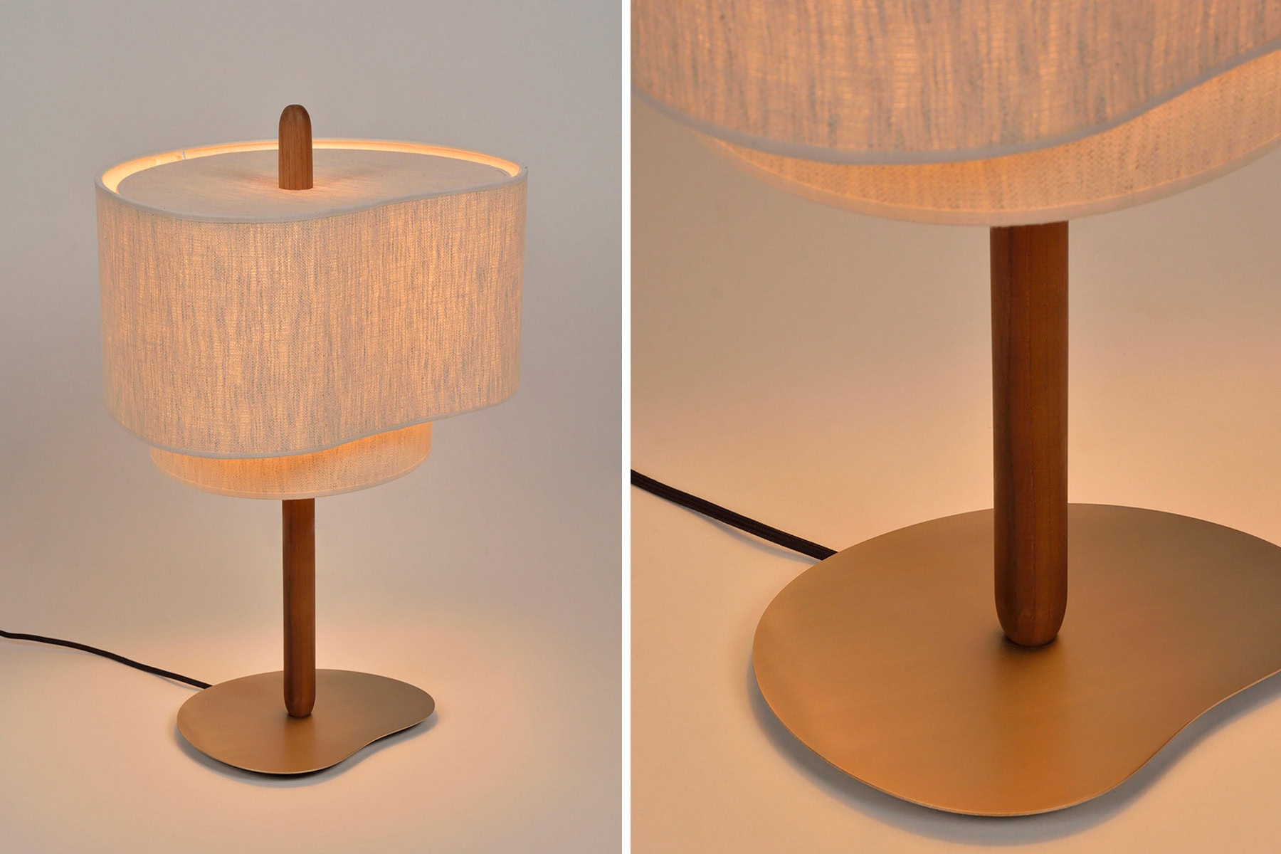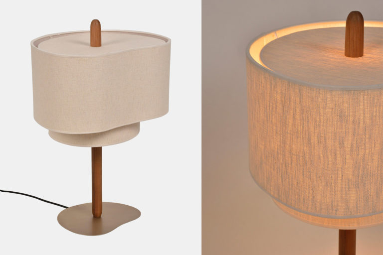 Abat-jour de forme organique composée de 2 abat-jours en tissu.