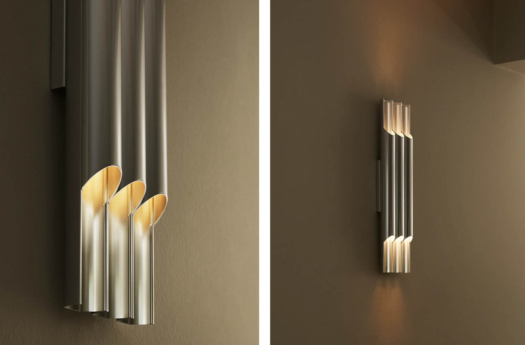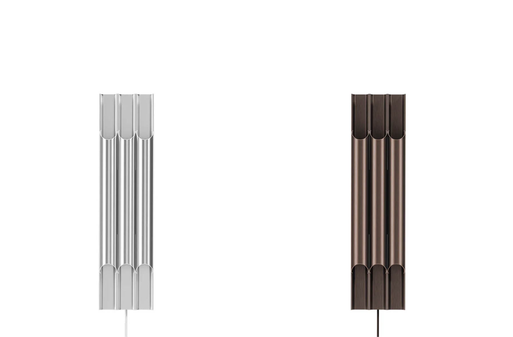 L’applique ‘Pan Wall 50 III’ dispose de deux sources lumineuses internes pointant dans chaque direction, ils garantissent que les deux extrémités de l’abat-jour tubulaire émettent des quantités égales de lumière directionnelle douce tout en projetant un beau motif sur le mur
